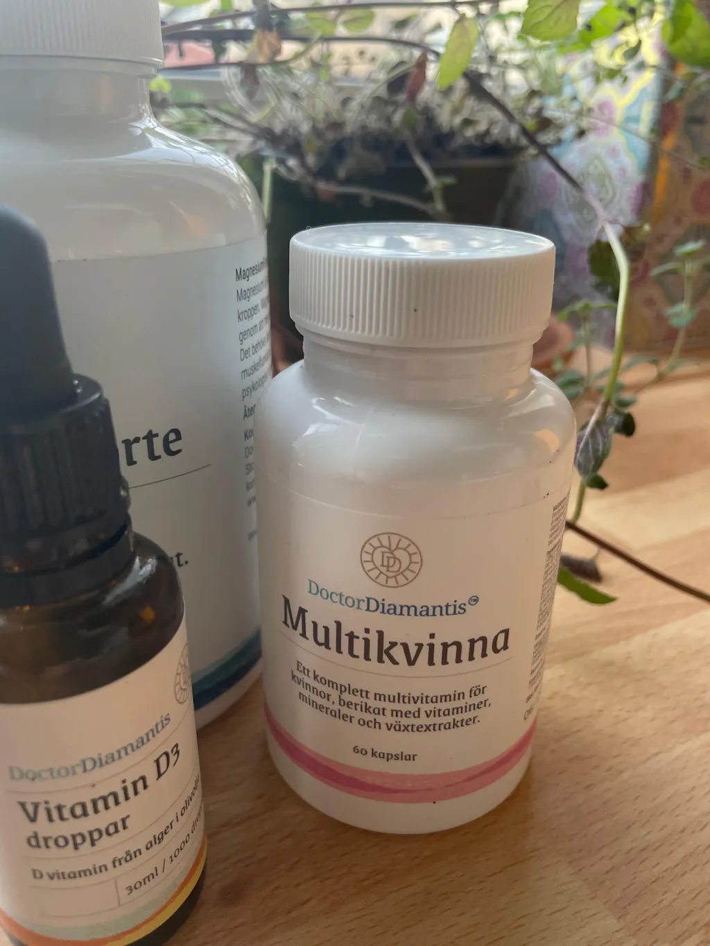 Skönt med en produkt som innehåller nästan allt man behöver. Jag har kompletterat med magnesium och D-vitamin. Upplever att jag känt mig lite piggare efter att jag började med multikvinna. Ville testa pms multivitamin och multiört, men har ej råd med båda och därför tänkte jag att denna va ett bra alternativ.